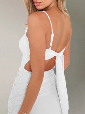 White Shoulder Straps Bodycon Solid Above Knee Sleeveless Polyester Dress