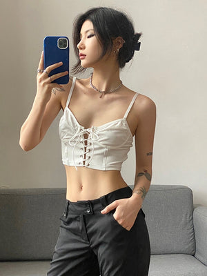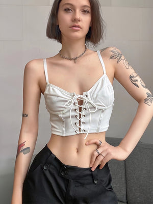 White Shoulder Straps Sleeveless Solid Polyester Top