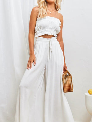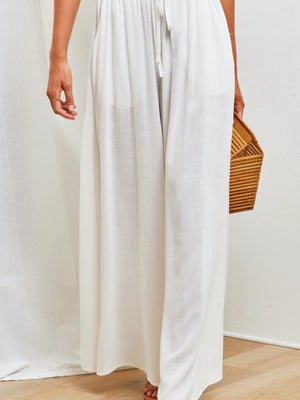 White Solid Straight Western Palazzo