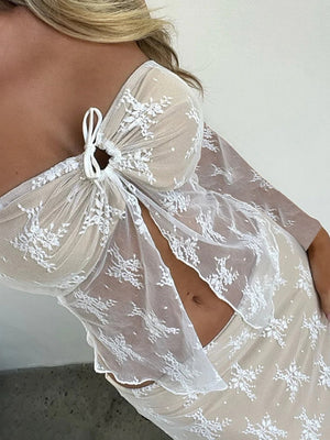 Whether you're going to a party, a casual outing, or a special event, this White Square Neck Long Sleeves Top & Skirt Set is a must-have addition to your wardrobe.