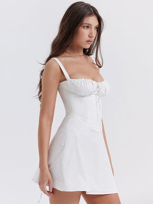 White Square Neck Sleeveless Solid Polyester A-Line Dress