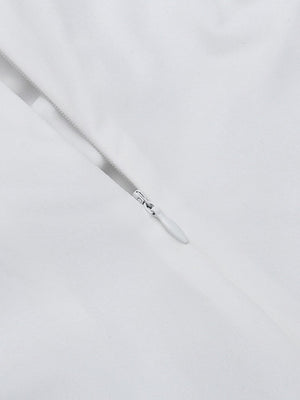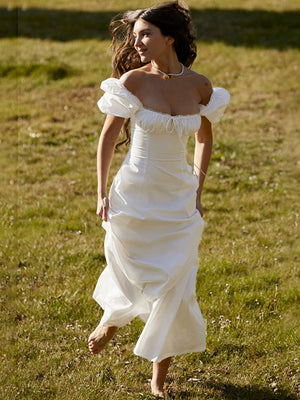 White Square Neck Solid Short Sleeves Above Knees A-Line Polyester Dress