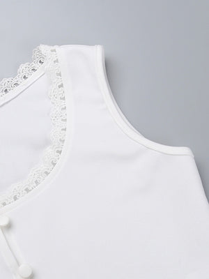 White V-Neck Sleeveless Polyester Crop Top
