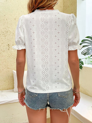 Introducing our White V-Neck Solid Short Sleeves Polyester Top, a stylish and versatile addition to your wardrobe. Made from high-quality polyester fabric, this top offers a comfortable and breathable fit. The v-neck design adds a touch of elegance, while the black color provides a timeless and sophisticated look.
