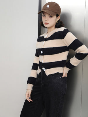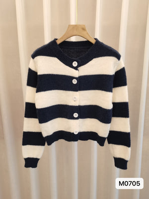White Viscose Rayon Round Neck Long Sleeves Horizontal Stripes Top
