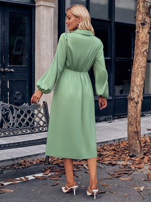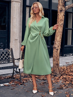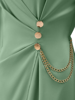 This elegant A-Line dress is made from high-quality green polyester, perfect for any occasion. The flattering silhouette and versatile color make it a must-have in any wardrobe. The dress features a classic v-neck neckline and a comfortable fit that will make you feel confident and stylish.