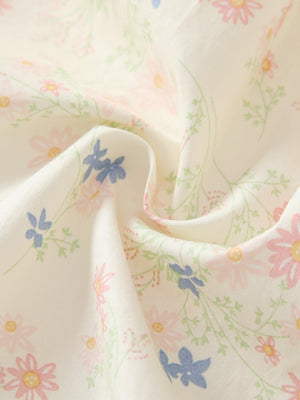 Yellow A-Line Round Neck Floral Short Sleeves Cotton Dress