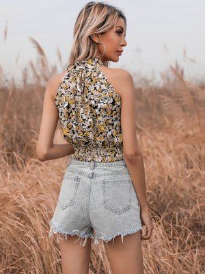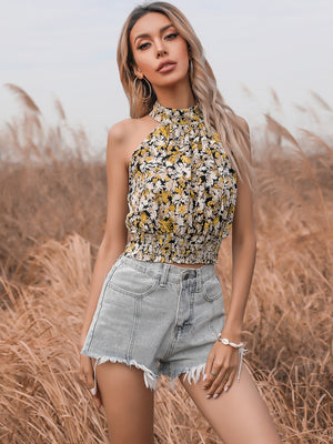 Introducing our Yellow Floral Polyester Top, a stylish and versatile addition to your wardrobe. Made from high-quality polyester fabric, this top offers a comfortable and breathable fit. The round neck design adds a touch of elegance, while the black color provides a timeless and sophisticated look.