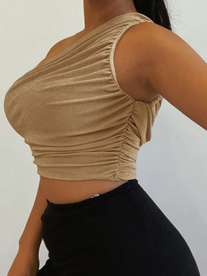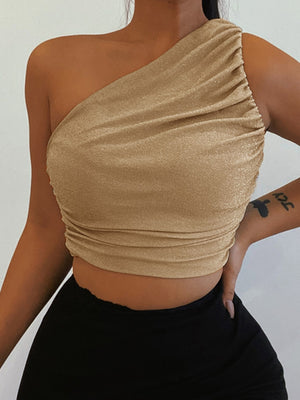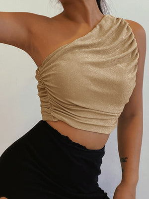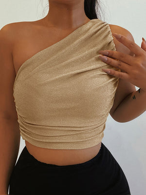 Introducing our Yellow One Shoulder Solid Sleeveless Polyester Casual Top, a stylish and versatile addition to your wardrobe. Made from high-quality polyester fabric, this top offers a comfortable and breathable fit. The one shoulder design adds a touch of elegance, while the black color provides a timeless and sophisticated look.