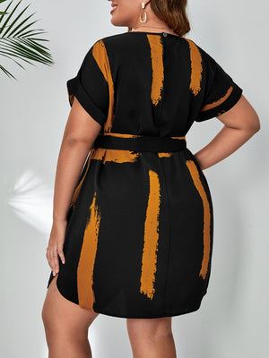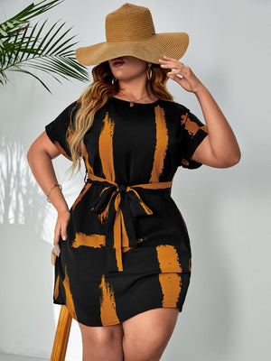 Yellow Round Neck Bodycon Abstract Short Sleeves Above Knee Polyester Dress