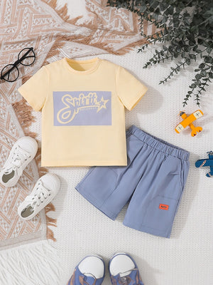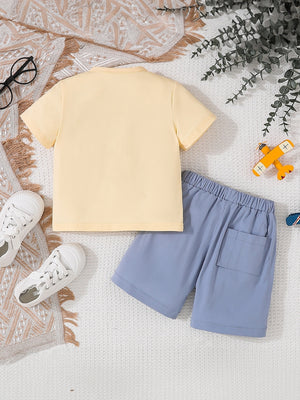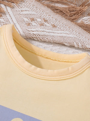 Yellow Round Neck Short Sleeves Printed Top & Shorts Pure Cotton Set