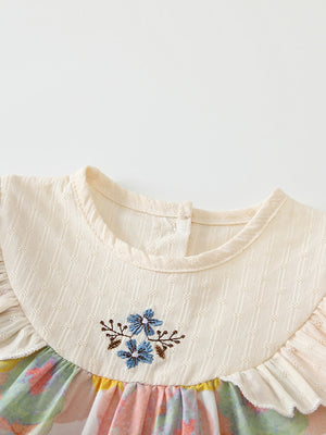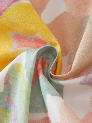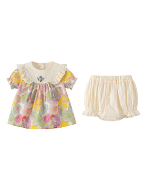 Yellow Round Neck Short Sleeves Printed Top & Shorts Pure Cotton Set